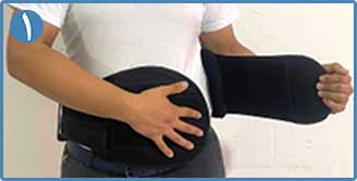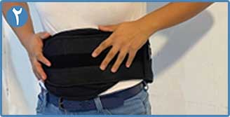 2- شکم خود را به داخل حفره شکمی بدن سوق دهید (در حالت بازدم) طرفین کمربند را روی هم قرار دهید بطوریکه سمت راست محصول با سمت چپ همپوشانی داشته باشد.