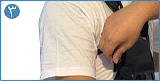 3- بند های شانه ای را از زیر بغل رد کرده و از شیار تعبیه شده روی پد پشتی عبور دهید و روی خودش بچسبانید.