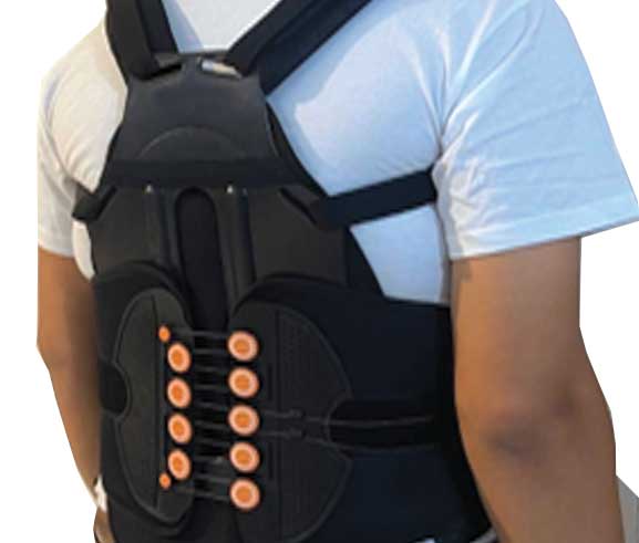 بریس تراکولومبوساکرال سخت اکسپرت با سیستم پیشرفته قرقره ای 1 به 6 از ساختار مفصلی ستون فقرات در مهرههای لگنی، کمری و پشتی حمایت مینماید این کمربند طبی حرکت در ستون فقرات را از ناحیه قفسه سینه (میانه پشت) تا ساکروم (پایینِ کمر) محدود نموده و به گردن اجازه حرکت آزادانه میدهد. این محصول را می توان به صورت یک ارتز بلند ستون فقرات که از ناحیه مهره های سینه ای تا کمری را پوشش می دهد مورد استفاده قرار داد و در عين حالي كه راحتي بيمار را در الويت دارد يك كمربند طبي ساپورتيو بوده و دارای قابليت سيستم مكانيكي ايجاد فشار 1 به 6 برابر میباشد. اين قابليت تنها بوسيله كشيدن يك دستگیره عمل مي كند. یک کشش آسان و مطمئن با ايجاد فشار در قسمت شکمی بيمار منجر به شكل دهي ستون فقرات بيمار در حالت آناتوميك خود میشود. استرپ های بكار رفته در اين محصول از استرپ هاي بكار رفته در مدل هاي قديمي اين کمربندها بسيار محكم تر ميباشد و اين نكته باعث ميشود كه اين محصول براي استفاده در يك دوره طولاني بسيار بادوام تر باشد. اين محصول يك ارتز با مكانيزم پيشرفته مدولار ميباشد و همانطوريكه بيمار به مرور پس از استفاده از اين محصول درمان ميشود با تجویز پزشک میتواند ميزان كنترل و حمايت و ايجاد ثبات توسط اين ارتز را با جداسازی پدهای طرفین و پد پشتی كاهش دهد.