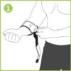 1- تمامی بندهای چسبی را باز کنید. باند را دور آرنج خود مطابق شکل بپیچید و محکم کنید.