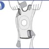 1-تمام بندهای چسبی قسمت ران و ساق پا را باز کنید. بالای تثبیت کننده زانو را با هر دو دست، در طرفین بگیرید. پا را داخل زانوبند قرار دهید و تا زانو بالا بکشید.