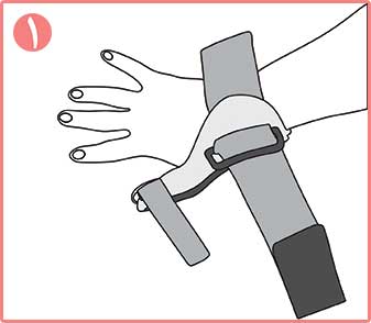 3- بند چسبی زبر و نرم بلند را دور مچ دست خود بپیچید، تا حد فشرده سازی لازم محکم ببندید.