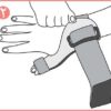1- تمام بندهای چسبی زبر و نرم محصول را باز کنید و انگشت شست را داخل قسمت شست بند نموده و مطمئن شوید که آتل شست در سمت جانبی انگشت شست شما قرار گرفته باشد.