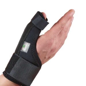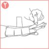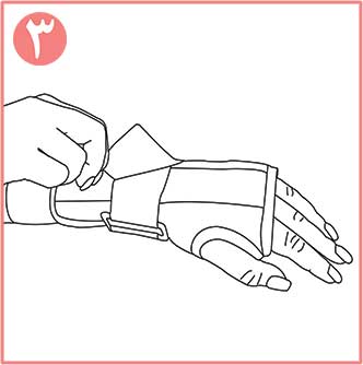 3- بند چسبی زبر و نرم بلند را از حلقه روی مچ بند عبور دهید و دور مچ دست خود بپیچید، تا آنجاییکه که احساس راحتی دارید آنرا سفت نمایید. مطمئن شوید که مچ بند به شکل مناسبی روی مچ دست شما قرار گرفته باشد و توجه کنید آتل باید به شکل راحتی بر روی کف دست شما قرار داشته باشد.