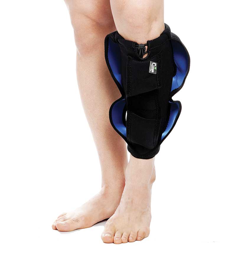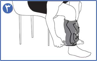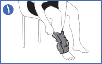 - Unfasten and loosen all straps then insert your toes into the product from the slotted part and pull the product up until the slotted edge of the product reaches under the patella of your foot.