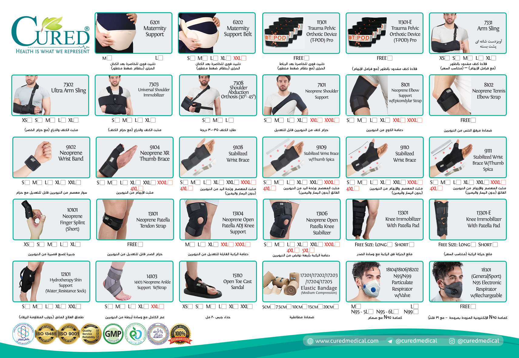 The CURED Knee Immobilizer is One Size that Fits Most knee support and will fit the knee circumference from 30 cm to 63 cm. Measure around the knee joint.