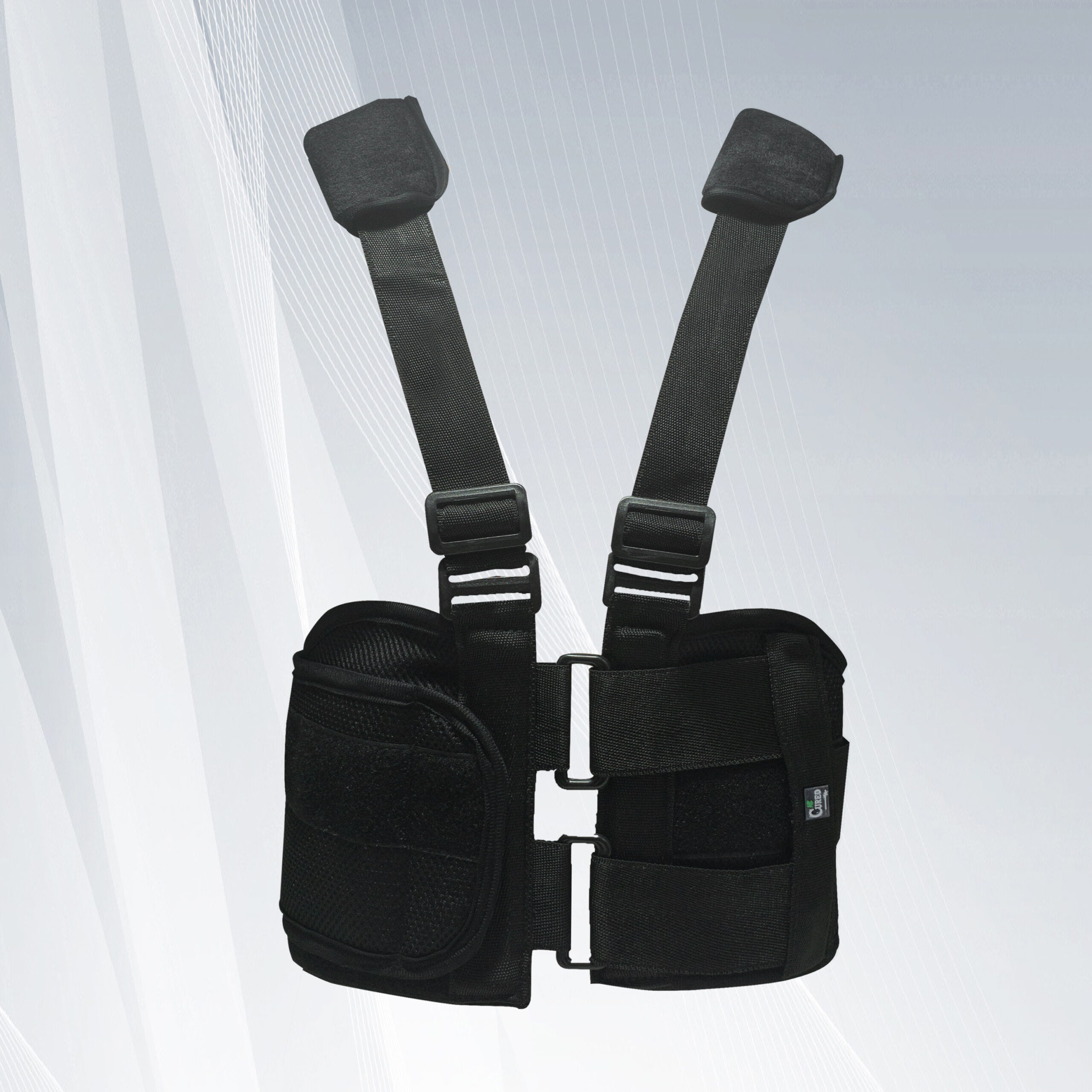 The CURED Sternum Support fits around the upper rib cage and provides compression and immobilization for the upper chest area and thoracic spine. Ideal for support and minimizing movement following rib and sternum fractures. Supports soft tissues contusions of the upper chest, sternocostal joint inflammation. A unique handgrip allows for maximum tightening when deep breathing during physiotherapy to allow for mobilizing secretions from the lungs.